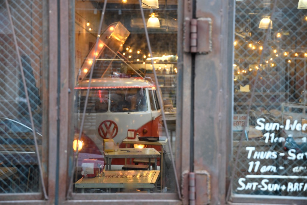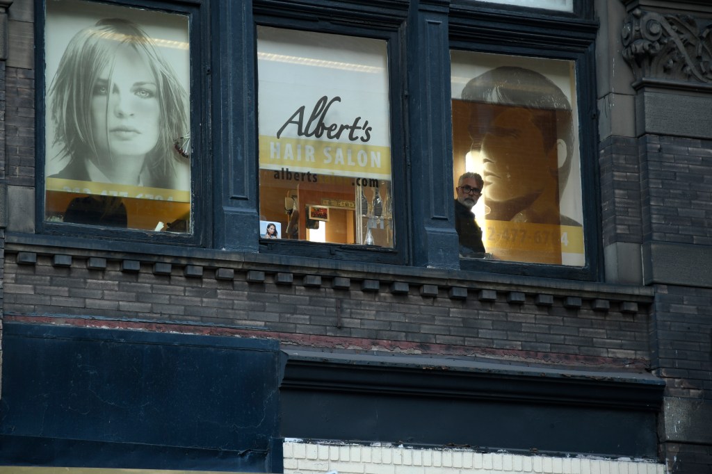 Using windows and storefronts to frame an individual really created intimate photographs. They are unaffected by my presence and merely go about their work or their honest, unfiltered interactions with others. I can also frame the picture with reflections, frames, objects in the window sill, and things in the back ground, allowing for the insertion of this natural, intimate human countenance into an image which could be abstract or hyperrealistic and play with two dimensional and three dimensional depth perception. This sort of depth perception I also apply to architectural photography. These intimate moments can also occur on the streets. Using corners, angles, and lines of a three dimensional structure to design the two dimensional photograph I am making.
