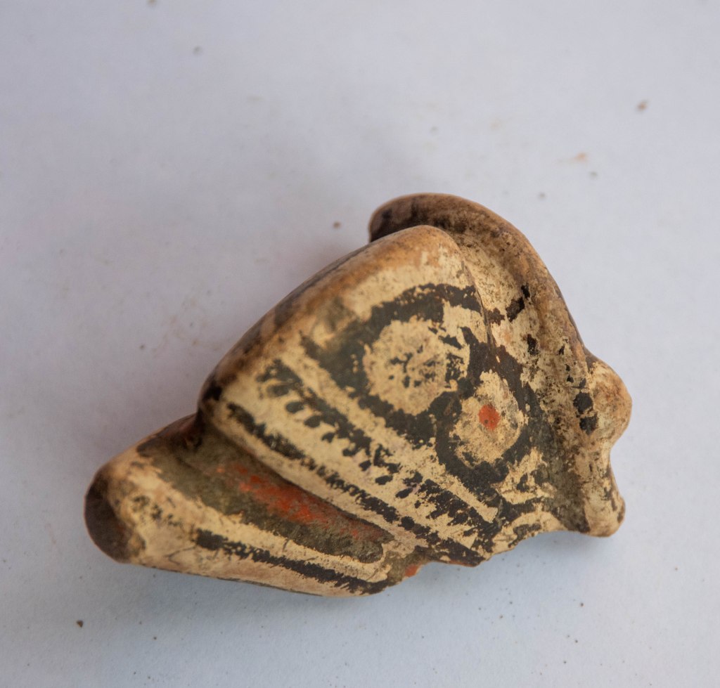 According to Sharisse McCafferty, an imported, incised sherd with a tapir face also established a connection of trade previously unknown.